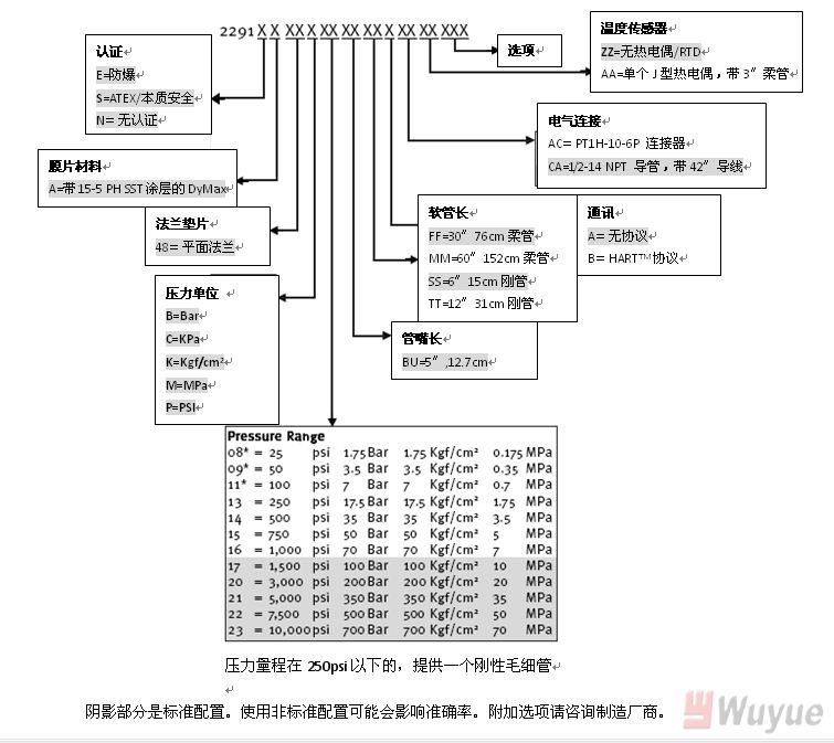 特征 ★ 通過“Z971”選項改進的線性產(chǎn)品 ★ HARTTM數(shù)字通訊系統(tǒng) ★ 4-20mA 環(huán)路供電輸出 ★ 0-25到0-10,000psi ★ 防爆,ATEX/本質(zhì)安全認證 ★ 符合PED和CE要求 優(yōu)點 ★ 線性改進80% ★ 能通過手持式裝置配置 ★ 直接提供輸出給DCS或PLC ★ 由客戶定義壓力量程 ★ 已認證無環(huán)境污染 ★ 符合新的EC要求 產(chǎn)品描述 SPX-L產(chǎn)品是一個智能的4-20mA按鈕密封式壓力傳感器,能在環(huán)境惡劣的地方使用。SPX2291是全焊接結(jié)構(gòu),具有一個較大的膜片和一個法蘭墊片,便于輕松安裝??蛇x用熱電偶或RTD測量熔體溫度。SPX2291E適用于1級,1區(qū),A,B,C&D組的危險區(qū)。防爆模式采用帶有42’’導(dǎo)線的管道配置。SPX2291S有ATEX/本質(zhì)安全‖1Gooa Eex ia ‖C, 0和1區(qū)的認證。SPX-L同樣包括一個新的Dynisco 先進模塊,DynalarityTM,一個使由材料和加工變化引起的偏移線性化的高級運算法則模塊。 SPX-L2291高溫熔體壓力傳感器(high temperature melt pressure sensor)